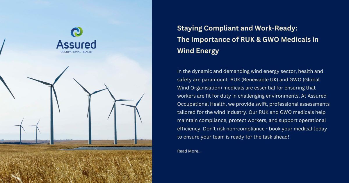 At Assured Occupational Health, we help keep your workforce compliant, healthy, and ready to work with fast, professional medical assessments tailored to the wind industry.